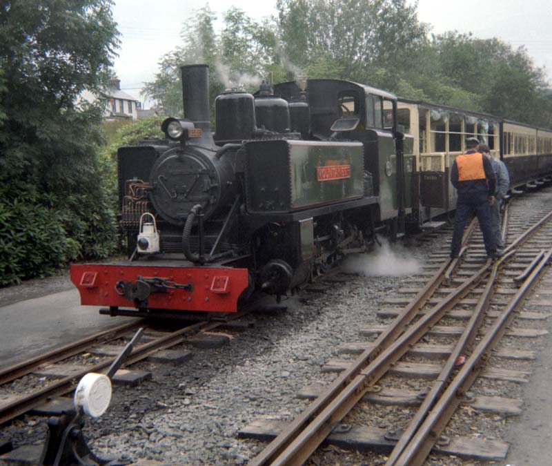 The last visitor from the Ffestiniog Railway was ALco Mountaineer which visited for one weekend only in Autumn 1986. It presented a good sight with the brown and cream carriages.