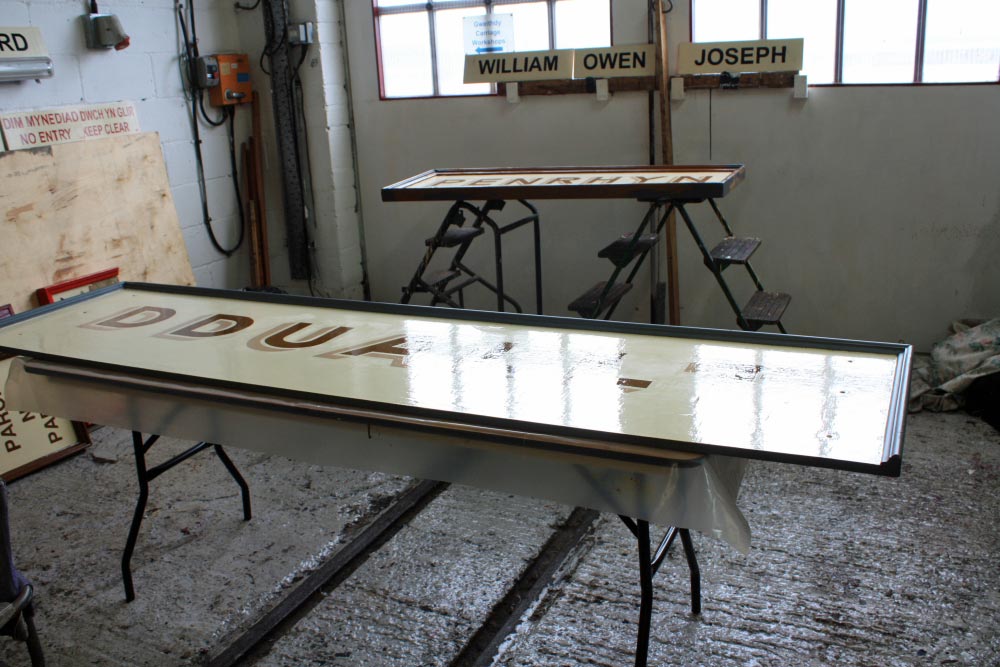 The long term vision for Boston Lodge will see new carriage sheds on the sea-side of the existing carriage shed. A team participated in carefully removing the memorial that would be in the way of this.