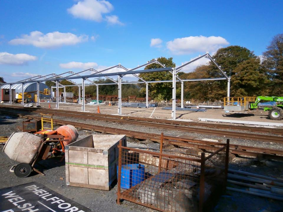 The area for the shed was prepared in June 2015 following the order being placed for the shed in April 2015. There was the anticipation to get the main frame of the shed erected by the end of 2015. During the Autumn, the framework duly appeared and the scale of the storage shed became apparent.