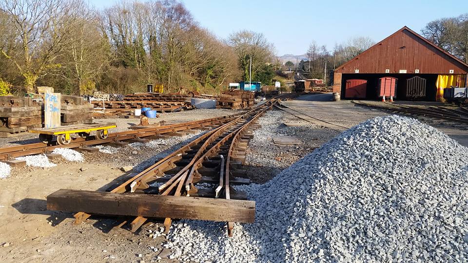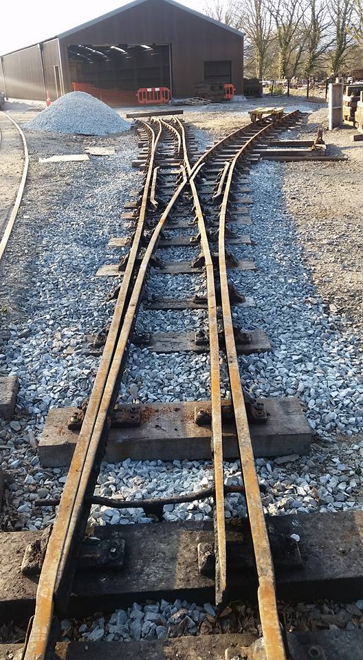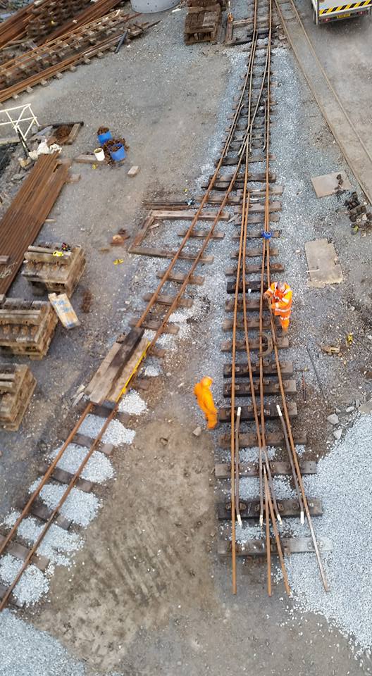 Latest activity over the last couple of months has focussed on laying points and track outside the shed. This is all in bullhead track, reusing this traditional track form that is now obsolete from the main line but will happily now have a long life in the sidings.