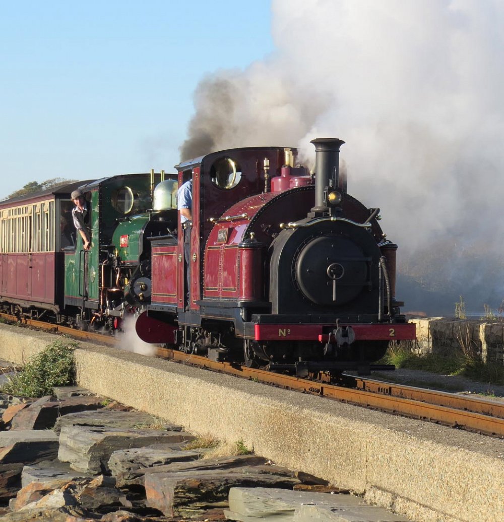 Prince and Blanche were in charge of the last trains of the main daily service. Other variations of locos in use during the week had included David Lloyd George, Lyd and Blanche, and Linda and Blanche.